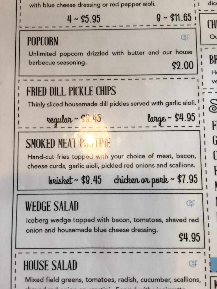 Hand-cut fries topped with your choice of smoked meat, brown gravy, bacon, cheese curds, garlic aioli, pickled red onions and scallions.